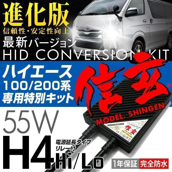 > 新品 Model 信玄 HID H4 55W 8000K 約3m 延長リレー付 ハイエース専用キット ハイエース 100 200系に 最薄 安心の1年保証