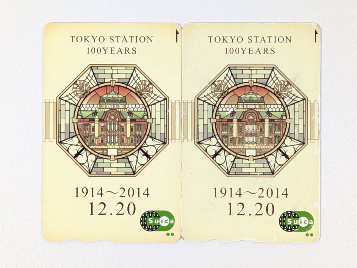 - 【キズあり2枚セット】東京駅開業100周年記念 Suica 無記名 残高なし 出場処理済み 限定 スイカ 特別デザインカード 【よごれあり】