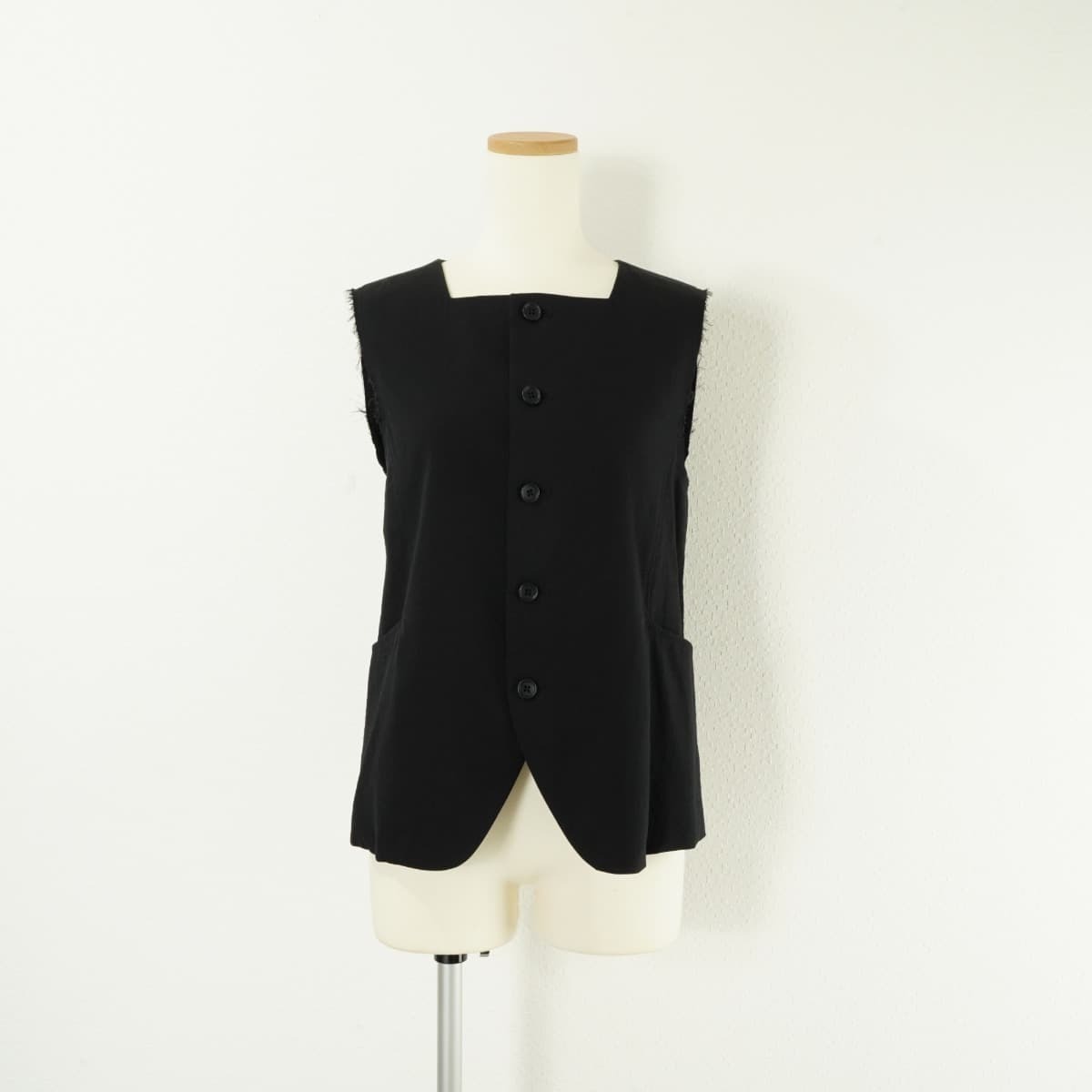 商品名:MACPHEE マカフィー コットン ナイロン ピケ スクエアネック ジレ ベスト 前開き ボタン ブラック 黒