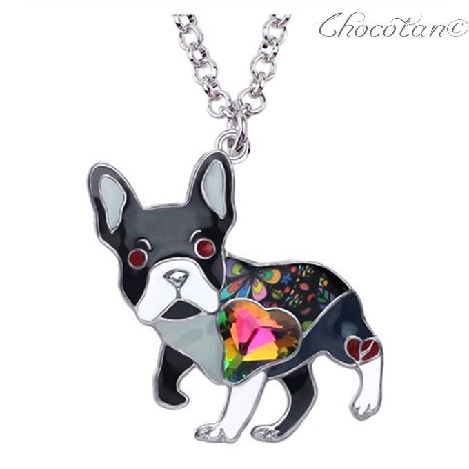 - 【送料無料】フレンチブルドッグ B 黒 エナメル ネックレス【新品】