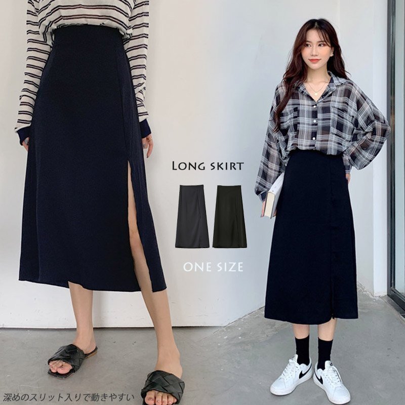 > レディース スカート ロング 大人 ボトムス ロングスカートスリット 黒 ハイウエストおしゃれ フリー ブルーグレー