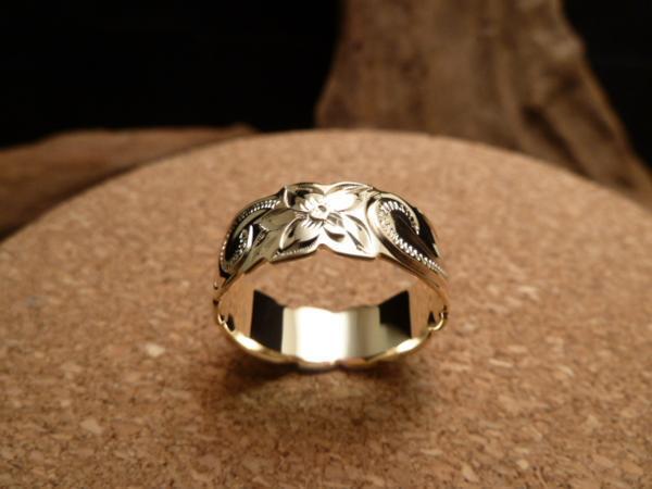 - [US8]8mmカットアウトスクロールゴールドリング★16.5号メンズレディースギフト記念日贈り物プレゼントハワインジュエリー