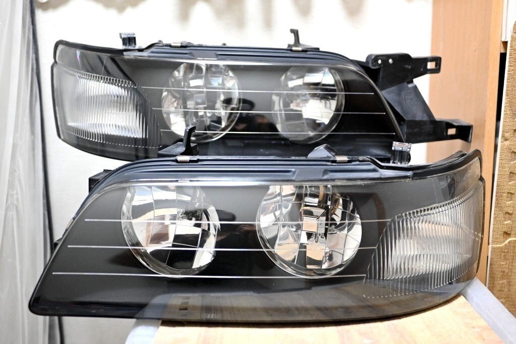 - 希少美品 NISSAN C35 HC35 GC35 日産 ローレル クラブS メダリスト 後期 純正 ブラック ハロゲン 左右 ヘッドライト ICHIKOH 1561 B番 RB20