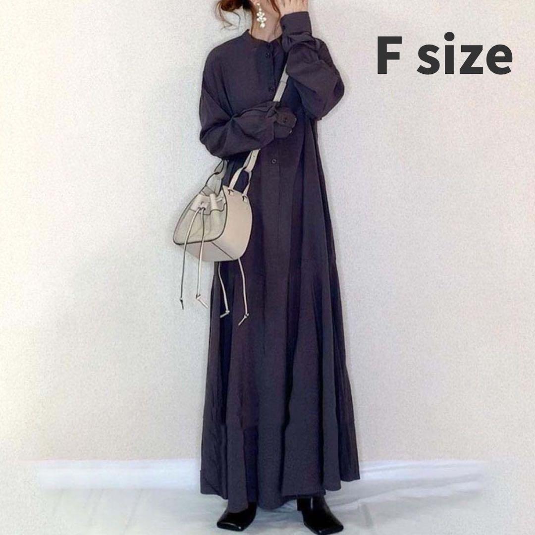 > H44★シャツワンピース ロングワンピース 長袖ワンピース ブラック 黒 マキシ丈 ゆったり カジュアル 大人可愛い レディース フリーサイズ