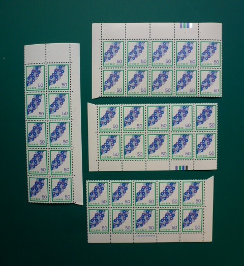 - 大蔵銘版より 50円 花輪 カラーマーク下と上と銘版と計数 各10枚 未使用 完美品 K-3-7s