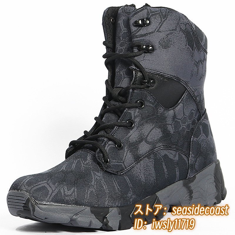 - 新品 アウトドアシューズ 作業靴 ミリタリー 迷彩柄 タクティカルブーツ蛇紋 メンズ 登山靴 トレッキング 防滑 バイクブーツ 黒 26.5cm