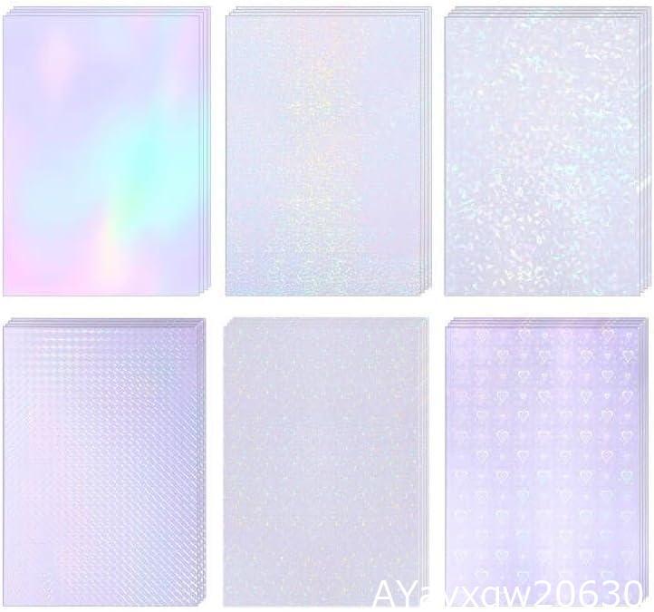 - Sitengle ホログラムシール 透明 クリアホログラムシート6種類 24枚セット A4サイズ(210*297mm) 自己粘着性