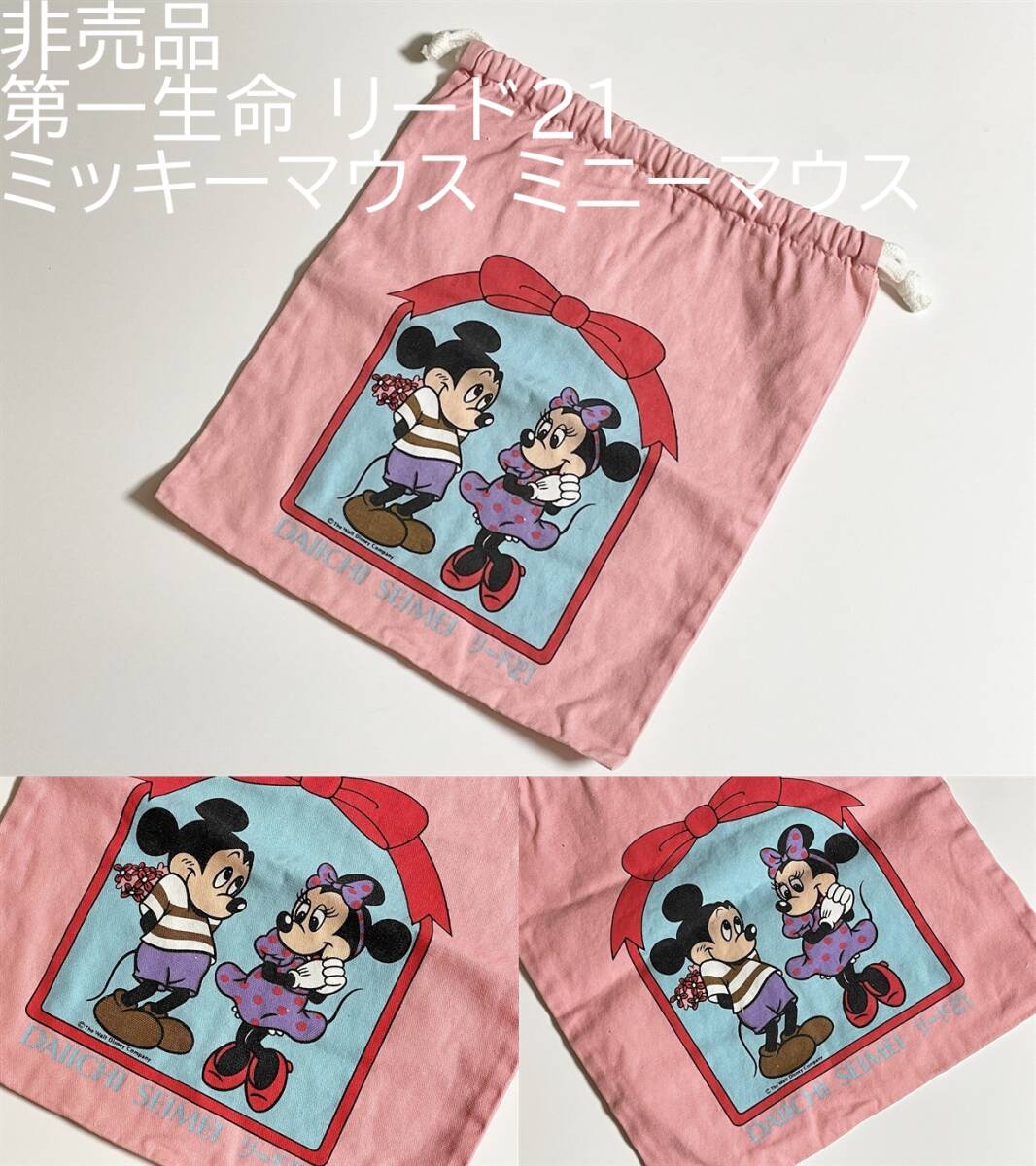 - 【必見です。希少 非売品】第一生命 リード21 ミッキーマウス ミニーマウス 巾着袋 当時物 レトロ 雑貨 ピンク系