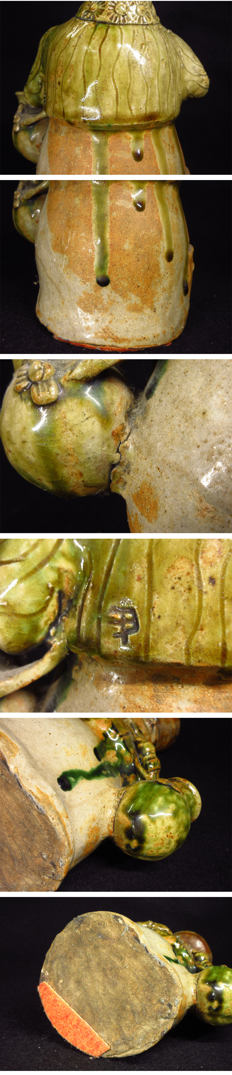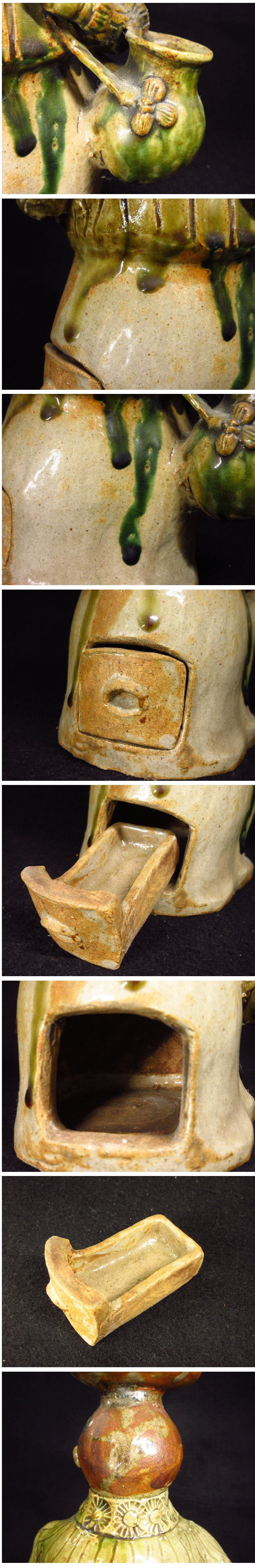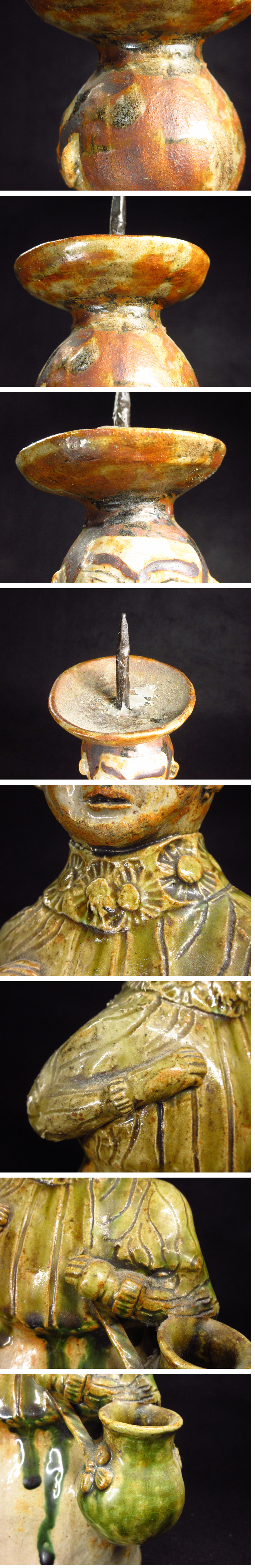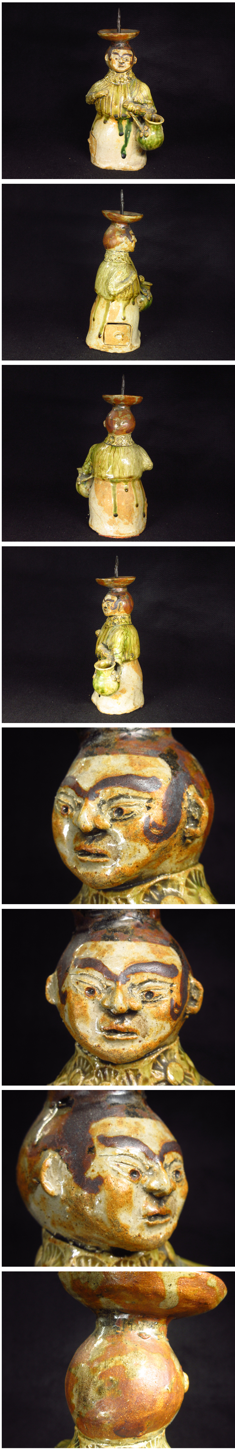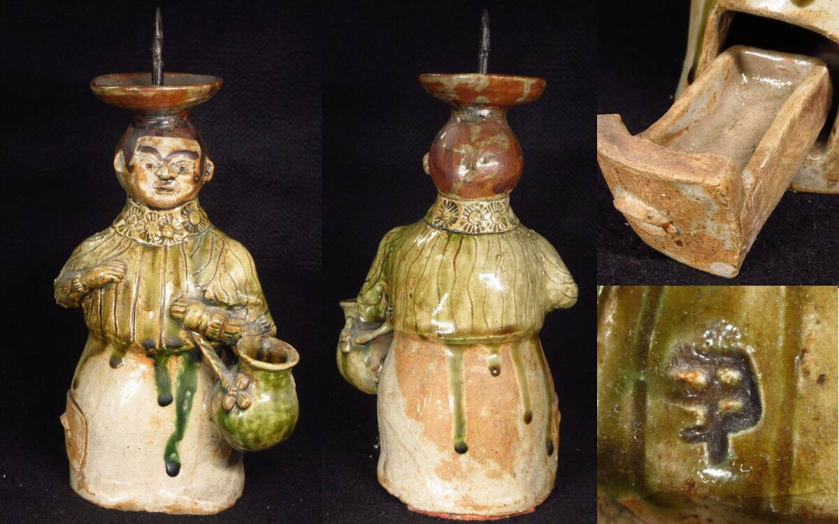 - 【漸】秀逸時代茶道具 織部南蛮人燭台 織部焼 蝋燭立 窯印有 古美術 本物保証【HY2695】