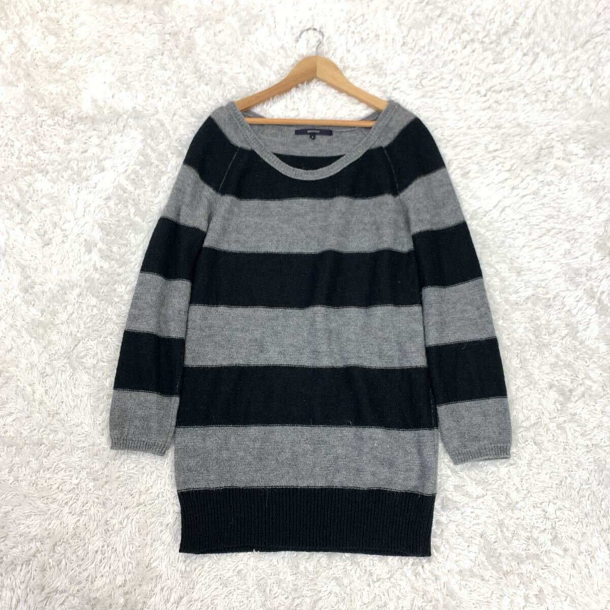- MACPHEE マカフィー 長袖ニットトップス 長袖セーター 長袖トップス ボーダー グレー ブラック アクリル アルパカ ウール 1 YA243