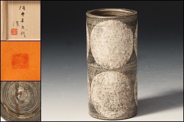 > U08238 (17) 東京芸大 佐々木文代 色絵 ドットの掛花 花器 共箱 /3F委