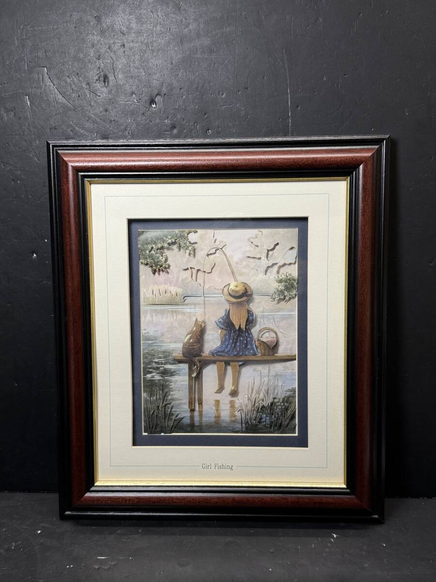 - ★コレクター必見 JOHN ELLAM ジョンエラム Girl Fishing イギリス シャドーボックス 3D 立体画 額装 額縁 木製 飾り コレクション GT753