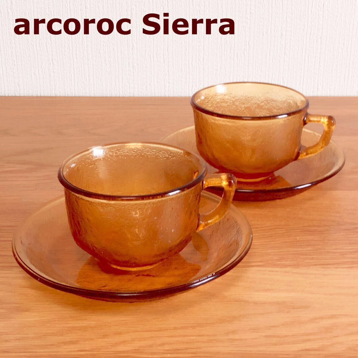 > arcoroc Sierra アルコロック シエラ カップ&ソーサー デュラン社 ヴィンテージ 蚤の市 フランス アンティーク レトロ 琥珀色 2客