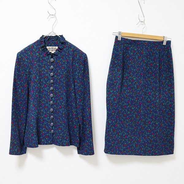 > レジァンス REGENCE セットアップ スカートスーツ ジャケット タイト スリット ノーカラー 総柄 [a964934n]