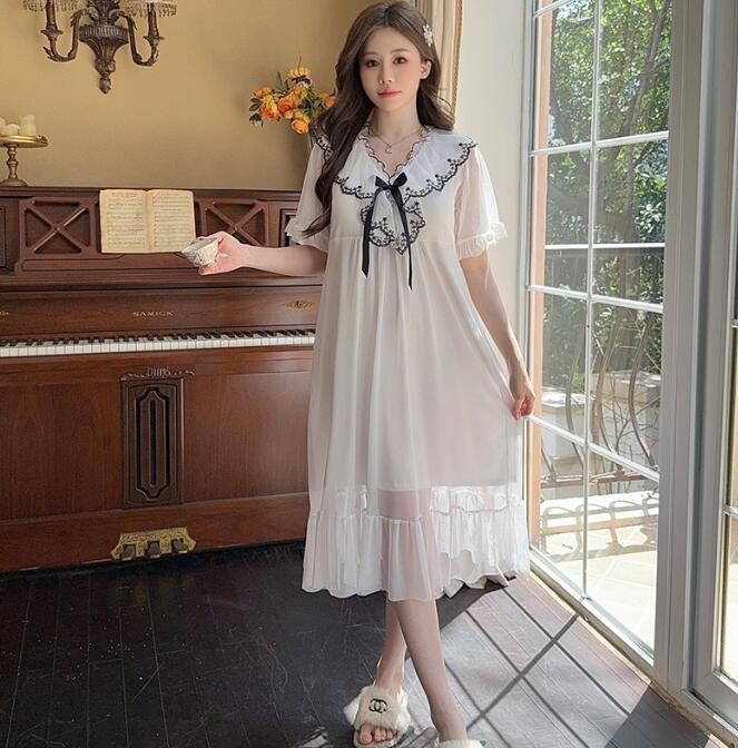- M0913 パジャマレディース● 20代30代40代 着心地抜群 上質 ● 大活躍 ワンピース シフォン white