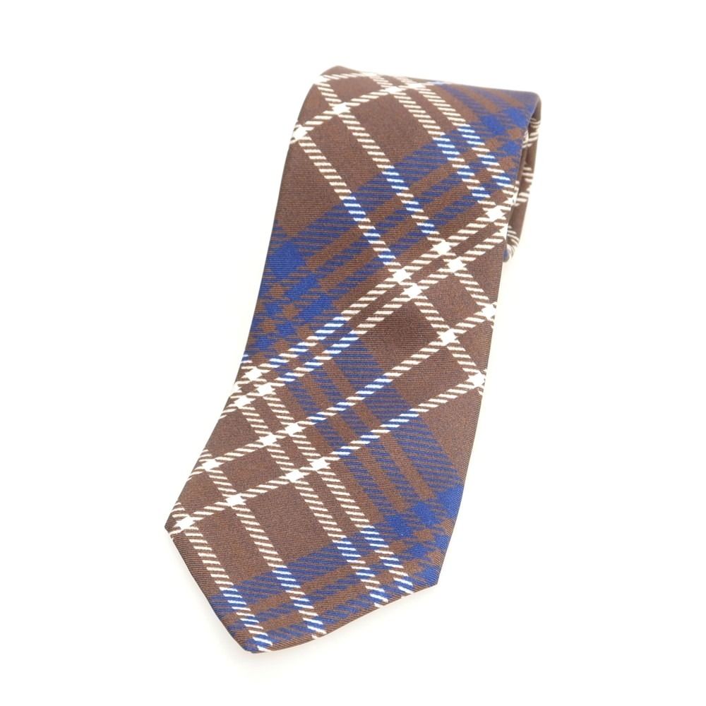 - 【中古】ルイジ ボレッリ Luigi Borrelli シルク プリント チェック柄ネクタイ ブラウンxブルー