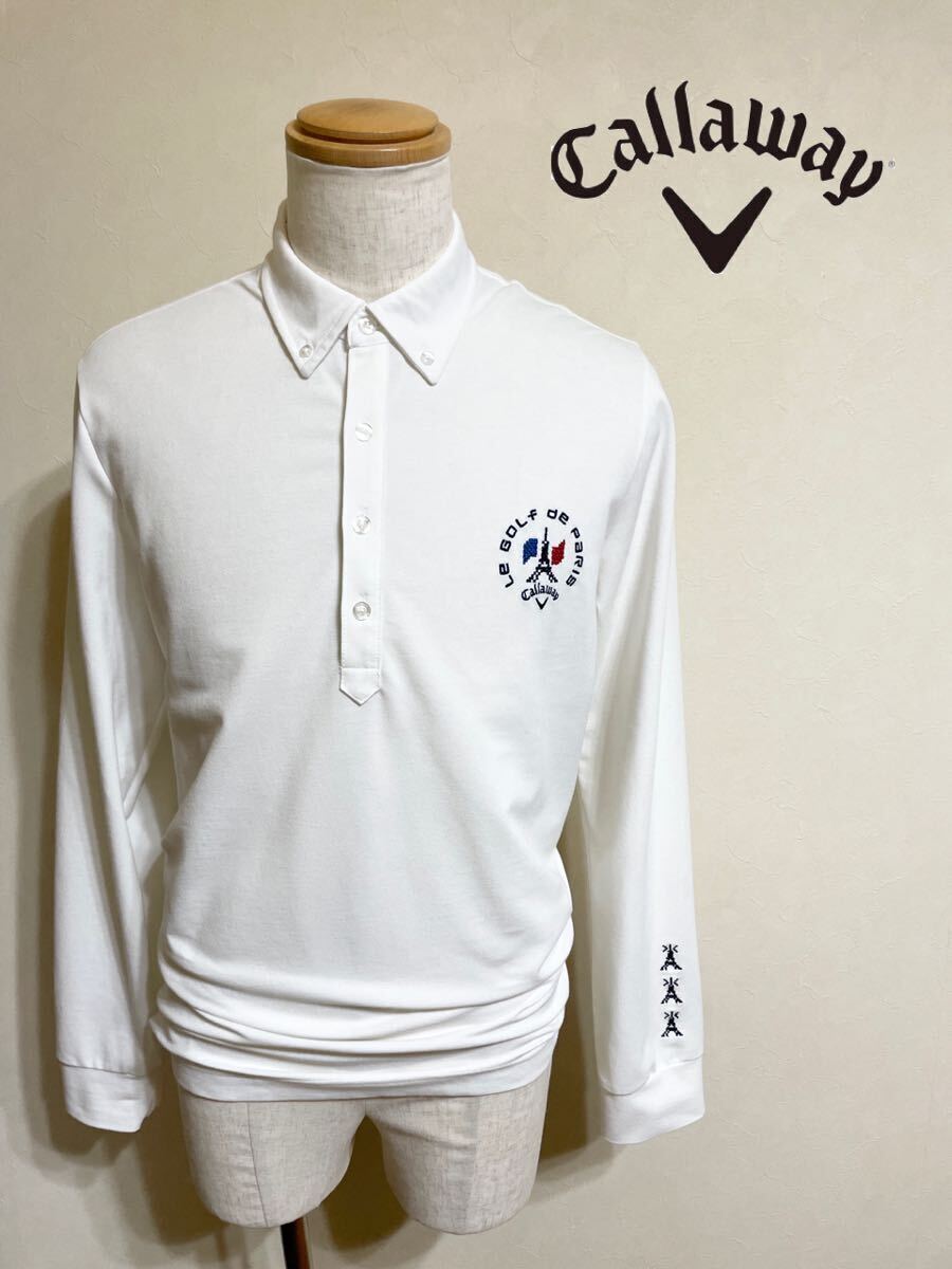 > callaway golf キャロウェイ ゴルフ ボタンダウン ドライ ポロシャツ トップス PARIS 刺繍 サイズLL 長袖 白 241-8256504