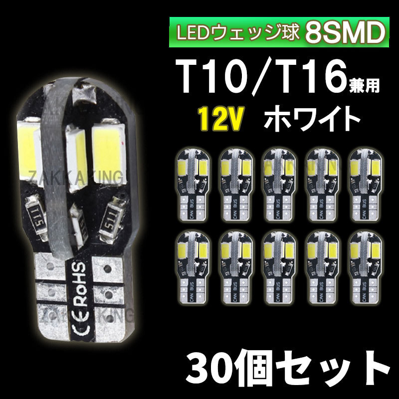 - T10 LED ホワイト バルブ 爆光 ウェッジ球 30個セット 8SMD 12V 車 ルームランプ ナンバー灯 ルームランプ キャンセラー cl001-30 az