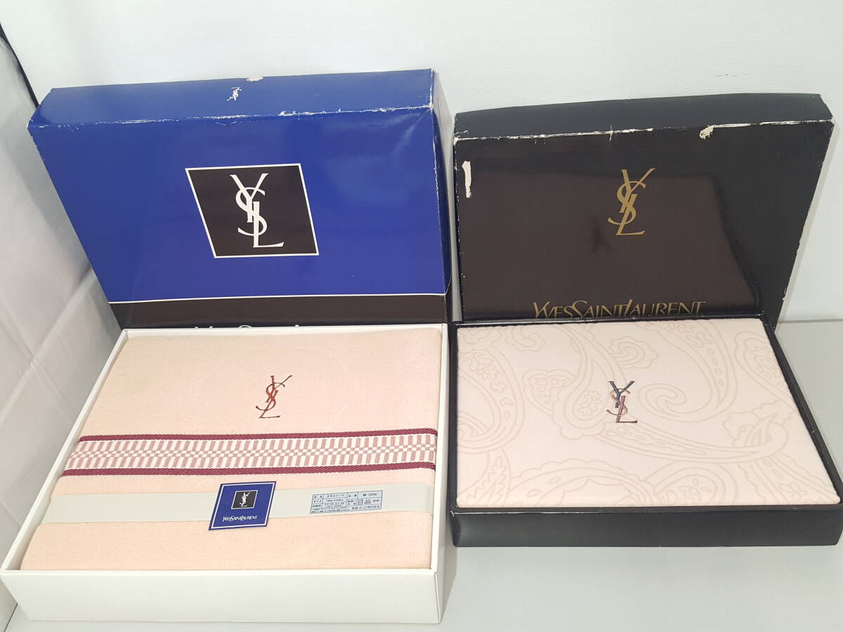 - 【未使用品】Yves Saint Laurent イヴサンローラン タオルシーツ プリントフラノシーツ 合計2点セット/寝具/140×240cm/YSL刺繍/LNQ90-10