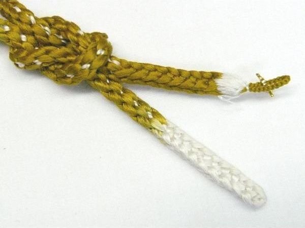 - 羽織紐 レディース 組紐 羽織カン付き 羽織ひも 黄金×白 手ぐみひも 001 ggp