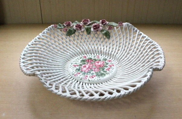 - ▲な-554 フルーツ皿 イタリア製 グッビオ 陶芸 バラ 最大高さ8cm最大幅31cm底径10.5cm