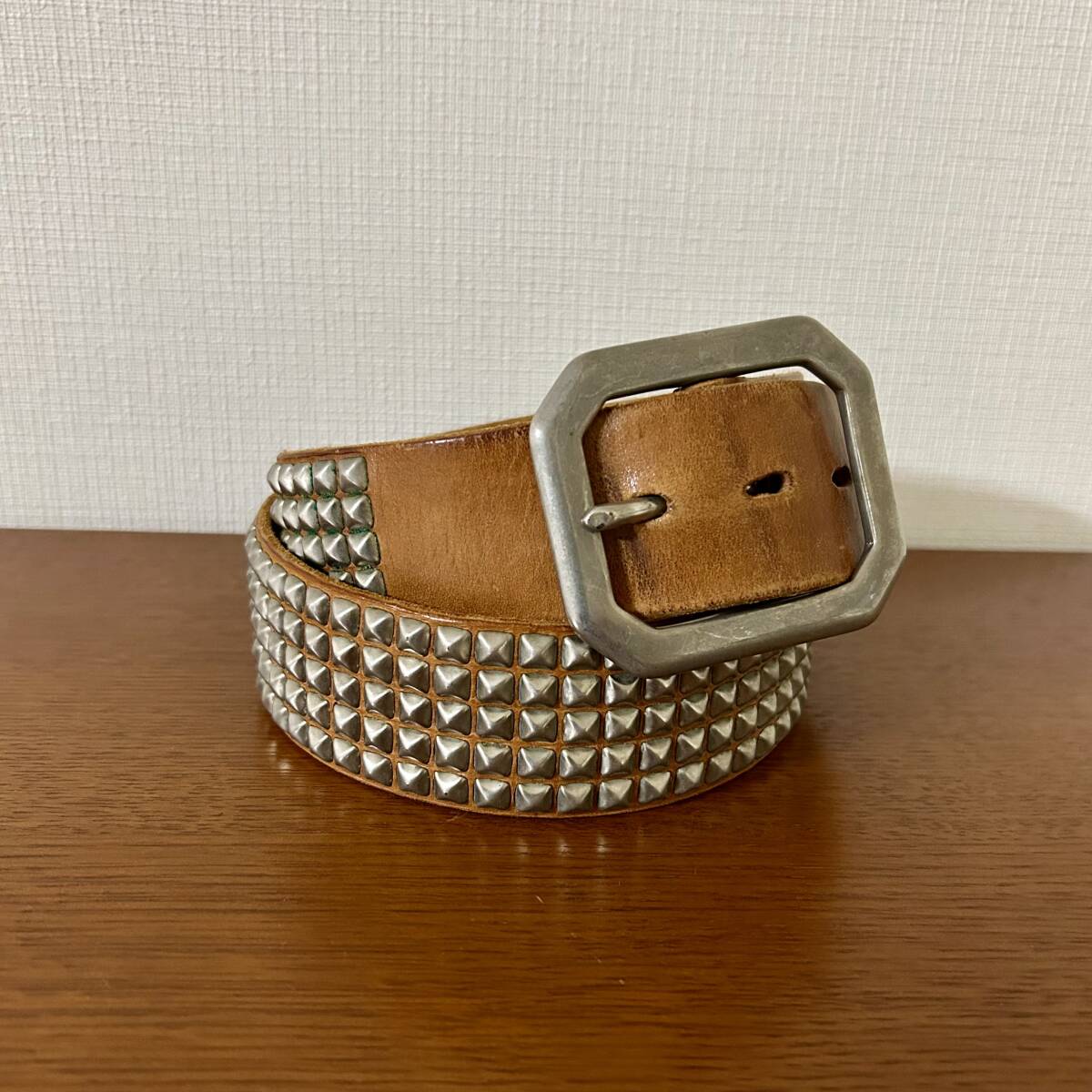 > STANDARD CALIFORNIA ×HTC ピラミッド スタッズ ベルト シルバー 34inch ライトブラウン スタンダードカリフォルニア エイチティーシー
