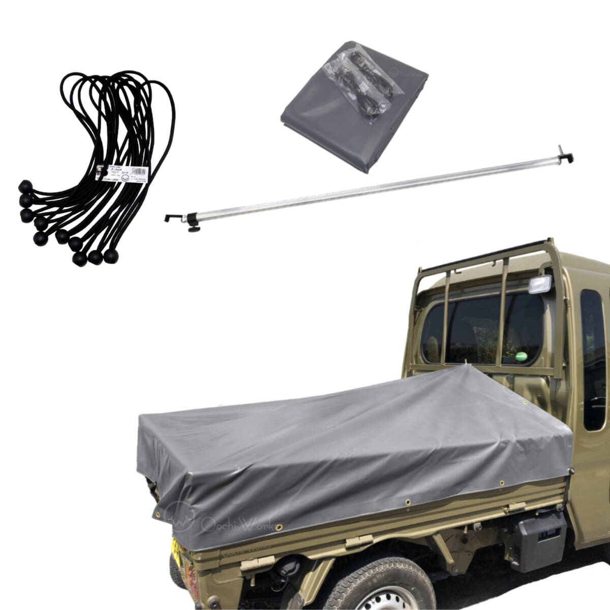 - バンジーコード 10本付 ハイゼットジャンボ用シート スロープ型 伸縮式荷台ポールセット グレー ◇本州四国九州送料無料◇