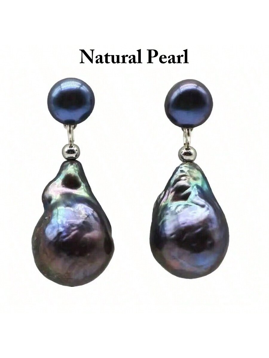 - ジュエリー レディース イヤーアクセサリー 925スターリングシルバー 天然珍しい淡水バロックパール ピアス 13-14mm ブラ