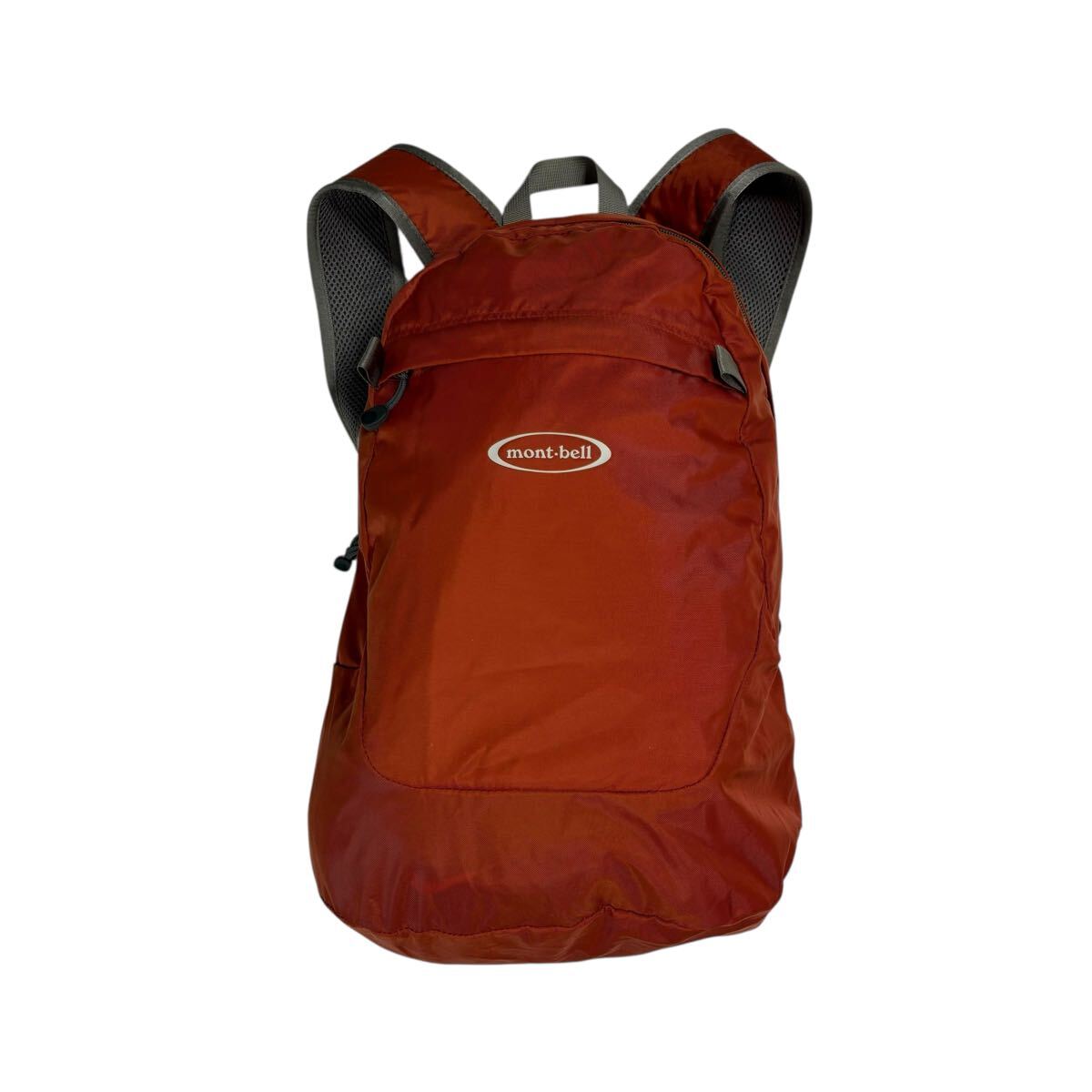 - (KA1016) mont-bell モンベル ポケッタブルデイパック リュック デイパック 15L オレンジ ロゴ 鞄 アウトドア ナイロン トレッキング 登山