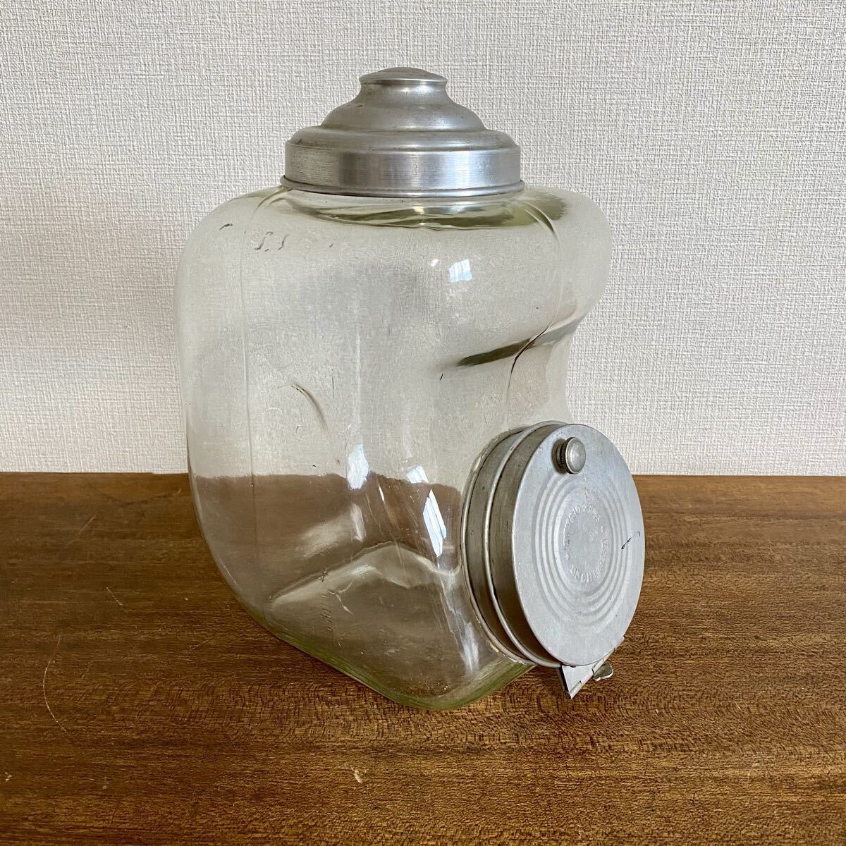 - アンティーク たばこ瓶 煙草瓶 アルミ蓋付き瓶 / エンボス ガラス瓶 気泡硝子 駄菓子瓶 古道具 昭和レトロ