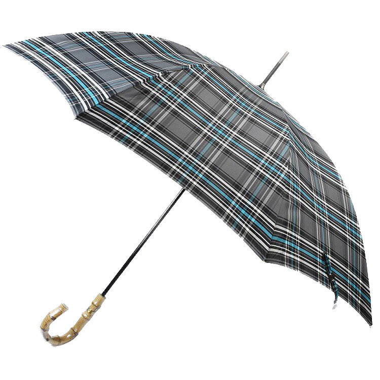 - ケイタマルヤマ 傘 雨傘 長傘 メンズ ブランド 65 cm おしゃれ 紳士 男性 チェック グレー ターコイズ 日本製