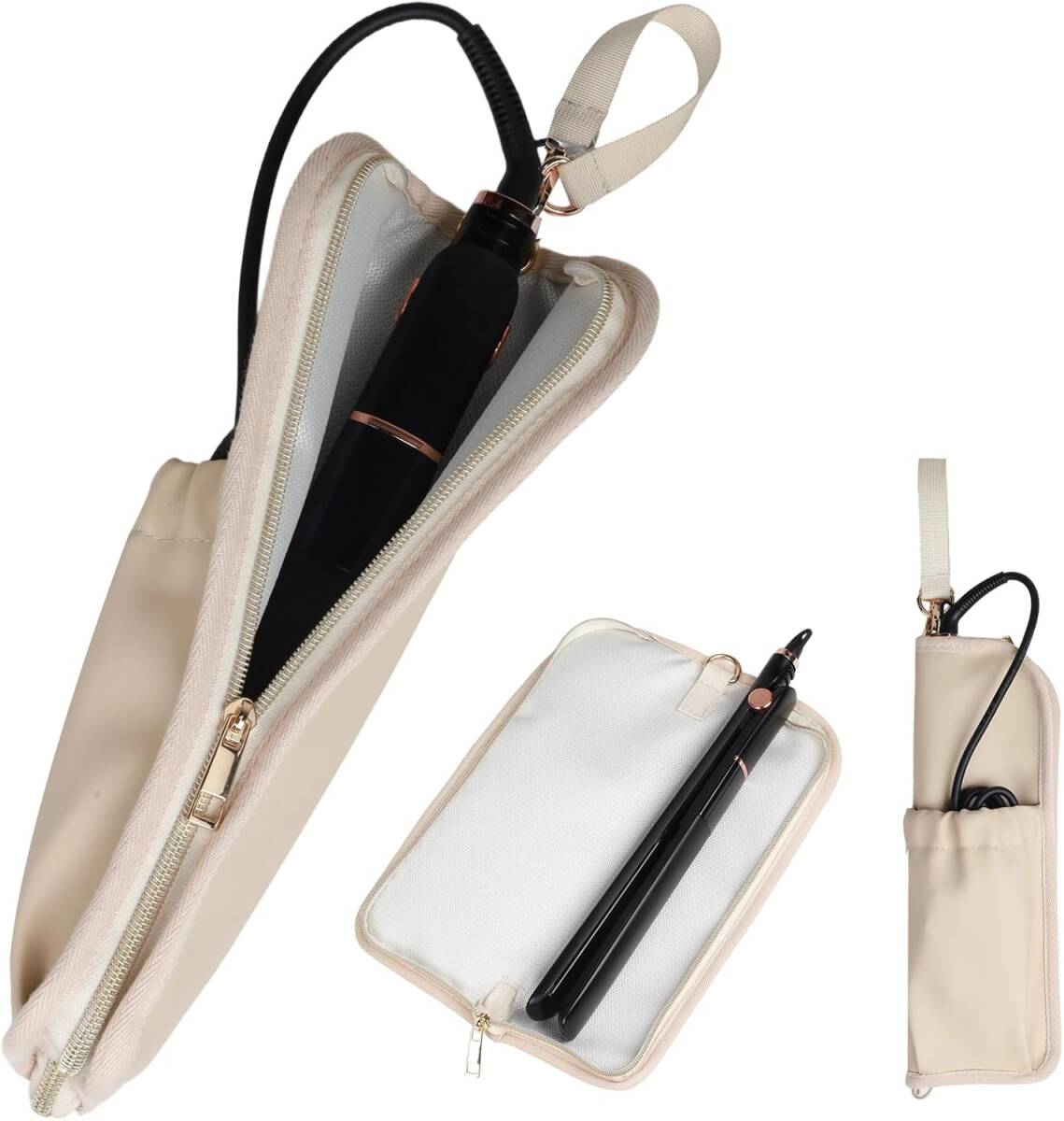 - ヘアアイロンケース 耐熱 収納ポーチ 吊り下げ 300℃熱いまま収納 180°全開可能 PUレザー 防水 上質 厚手