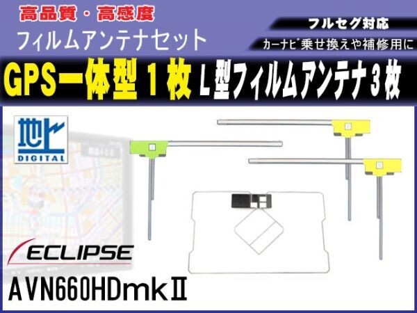 - イクリプス【AVN-G03】高感度 高品質 GPS一体型 L型 フィルムアンテナ 4枚セット 載せ替え 補修 地デジ フルセグ 汎用 RG12