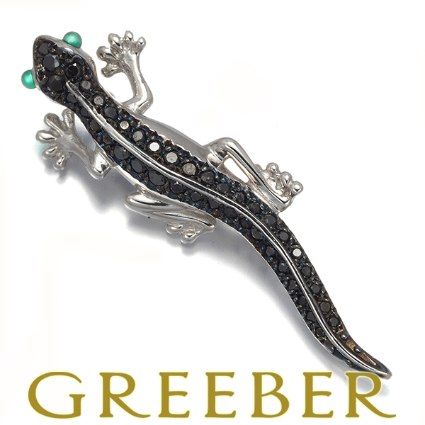 - ブラックダイヤ ダイヤモンド 0.34ct トカゲ アニマル ブローチ K10WG GENJ