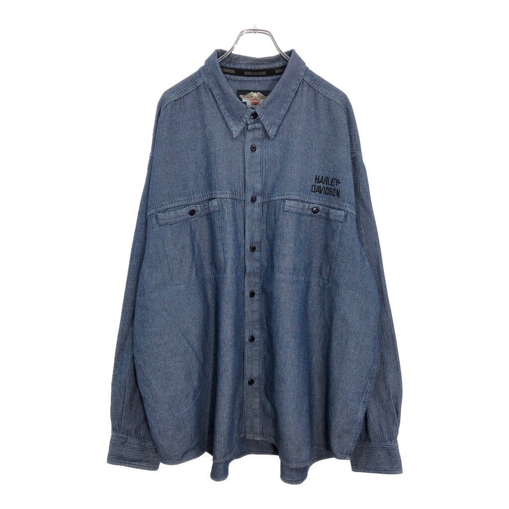 - HARLEY DAVIDSON ハーレーダビッドソン ロゴ 長袖シャツ 大きいサイズ モーターサイクル ヘリンボーン ブルー(メンズ 3XL)中古 古着 V0863