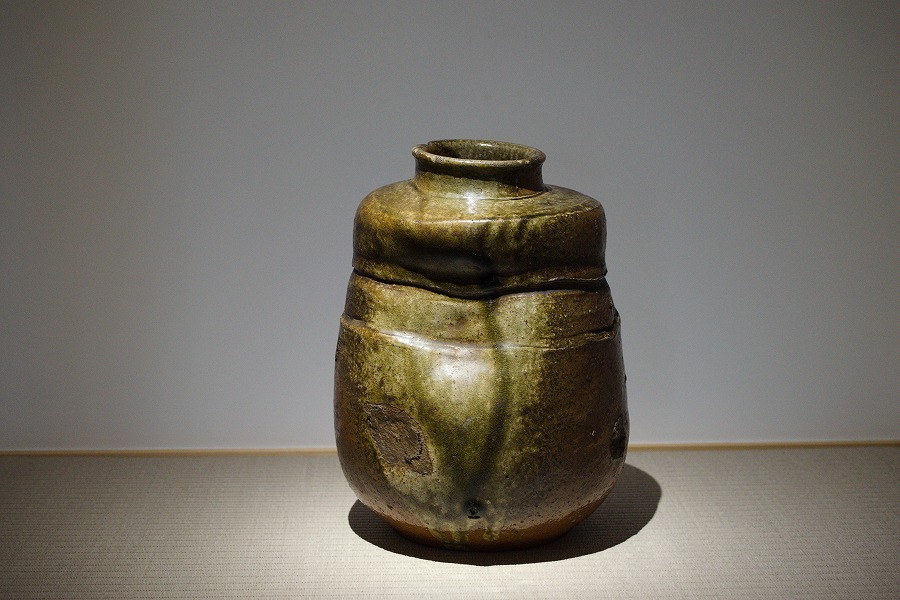 古丹波の肩衝壺です。底から肩にかけての深いニュウがありますが(画像参照)瀑布を彷彿とさせるようなすばらしい釉の景色と、いかにも桃山期らしい、自由奔放、かつ力強い造形を堪能できるような作品です。枝ものを入れると、どれほどかっこいい壺でありましょう。なお参考として兵庫陶芸美術館が刊行した図録を掲出しました。同時代の作品ですが、釉景色の美事さにおいて当出品はより秀でているものと考えておりますがいかがでしょう。