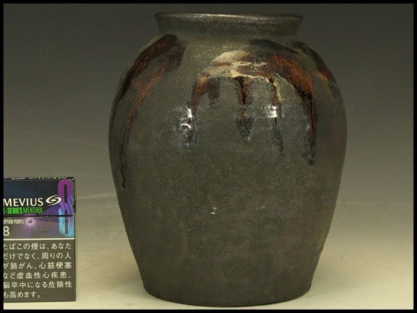 - 【銀閣】六古窯 壷 高21cm 自然釉 旧家蔵出 送料無料(RC973)