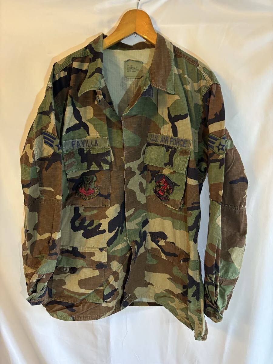- フィールドジャケット US AIR FORCE サイズL ビックサイズ ワッペン カモフラージュ 迷彩 アウトドア 1円スタート アメリカ古着
