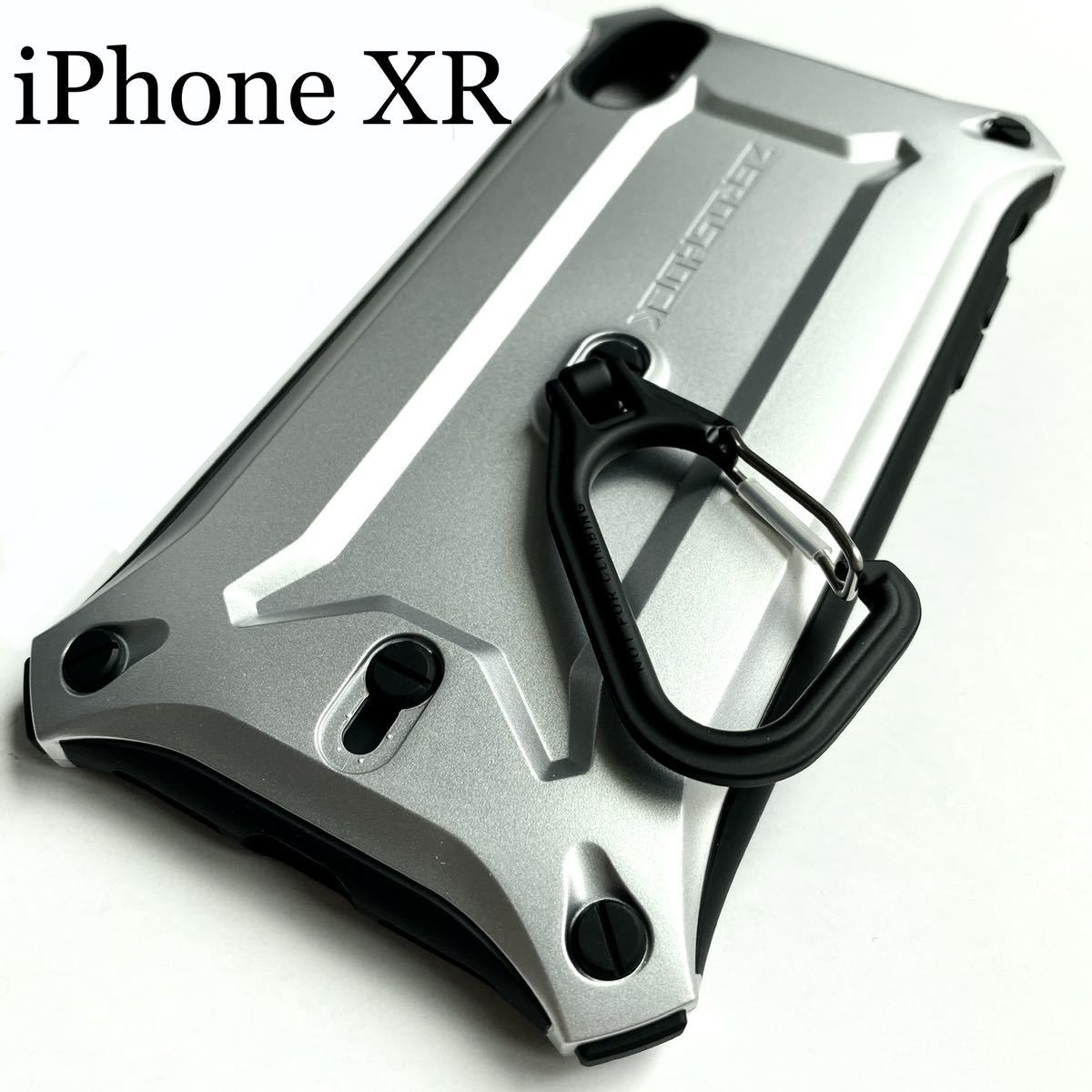 - iPhoneXR用ケース★ZEROSHOCK★2WAYカラビナ付★3層構造保護フィルム付★ELECOM★シルバー