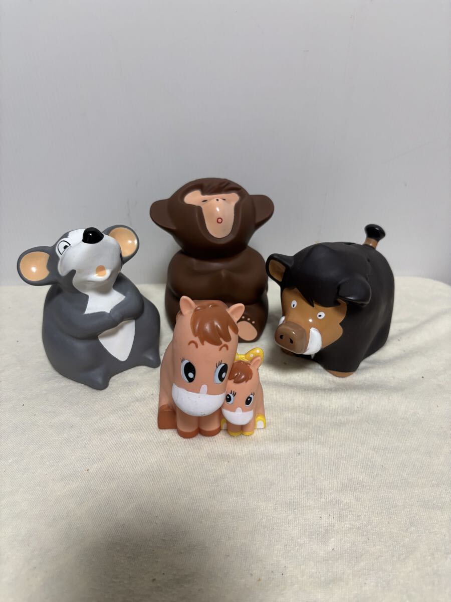 - ●(あ12) ソフビ JA 貯金箱 十二干支 馬 猿 鼠 猪 当時物 昭和レトロ [60]