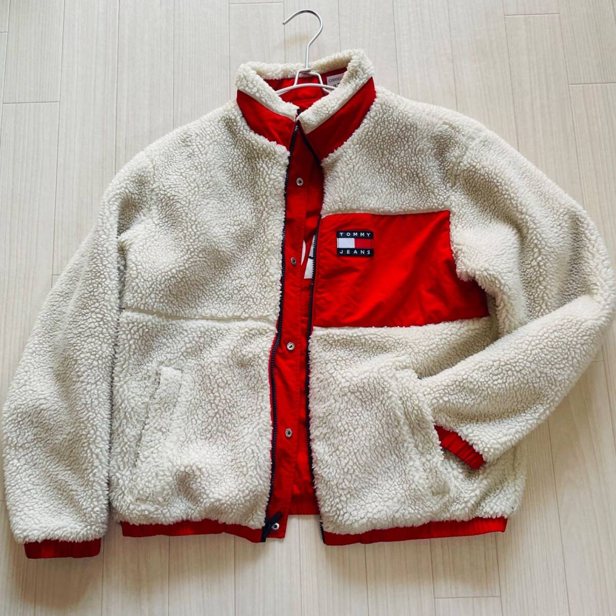 > 美品 トミーヒルフィガー リバーシブルボアコート ブルゾン ジャケット 無地 長袖 秋冬 メンズ L相当赤 レッド G0082