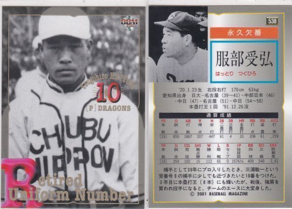 - ●2001BBM 【服部 受弘】 永久欠番 No.538:中日 R8