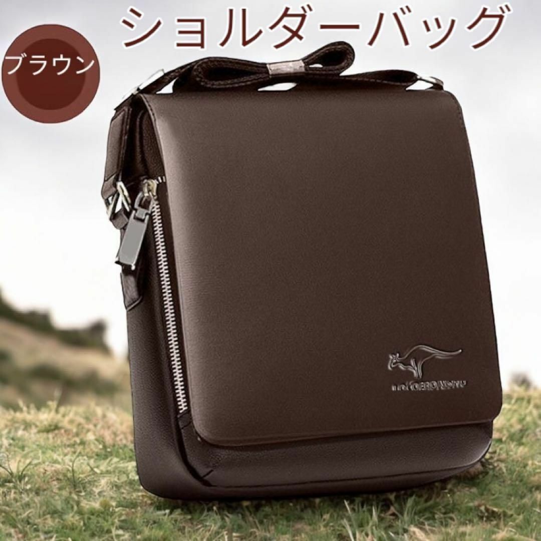 - ショルダーバッグ 上質 高品質 大容量 斜め掛け 肩掛け ビジネスバッグ マチあり 茶色 ブラウン メンズ ショルダー 厚手 送料無料 最短発送
