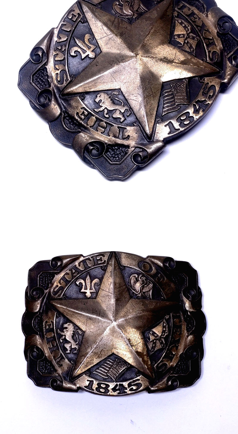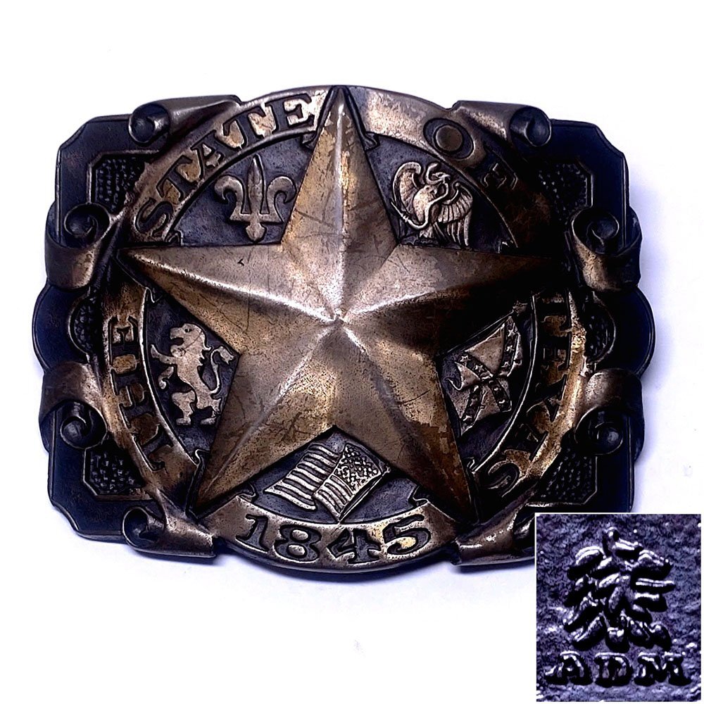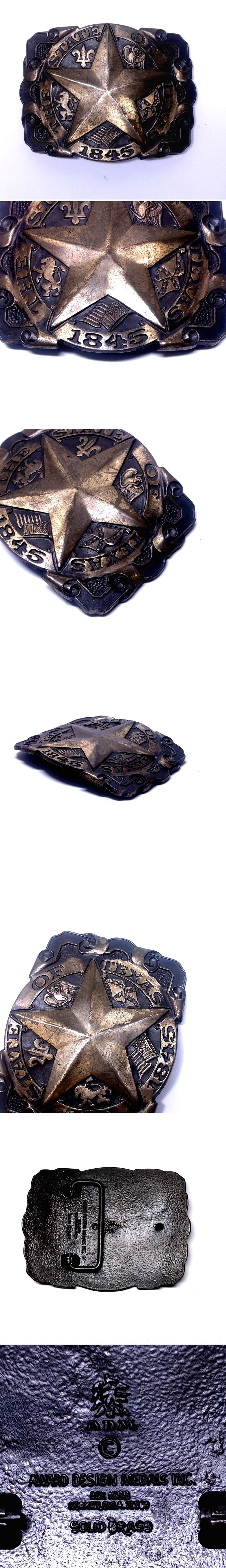 > 【侍】THE STATE OF TEXAS 1845 ローンスター 州旗 1980年代 ヴィンテージ ソリッドブラス 真鍮 ベルトバックル ADM社製 20=894