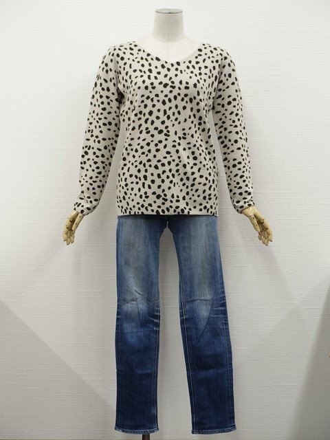> 美品 UNIQLO等 長袖カットソー+スキニーデニムパンツ コーディネート2点セット S相当 グレー地 黒 アニマル柄/青 クール系 30代~40代