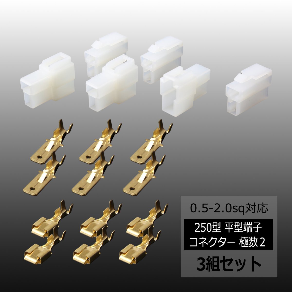- 250型 平型端子 コネクター 極数2 ロック機能付き カプラー 3組セット 2ピンタイプ デイライトなどに IZ107