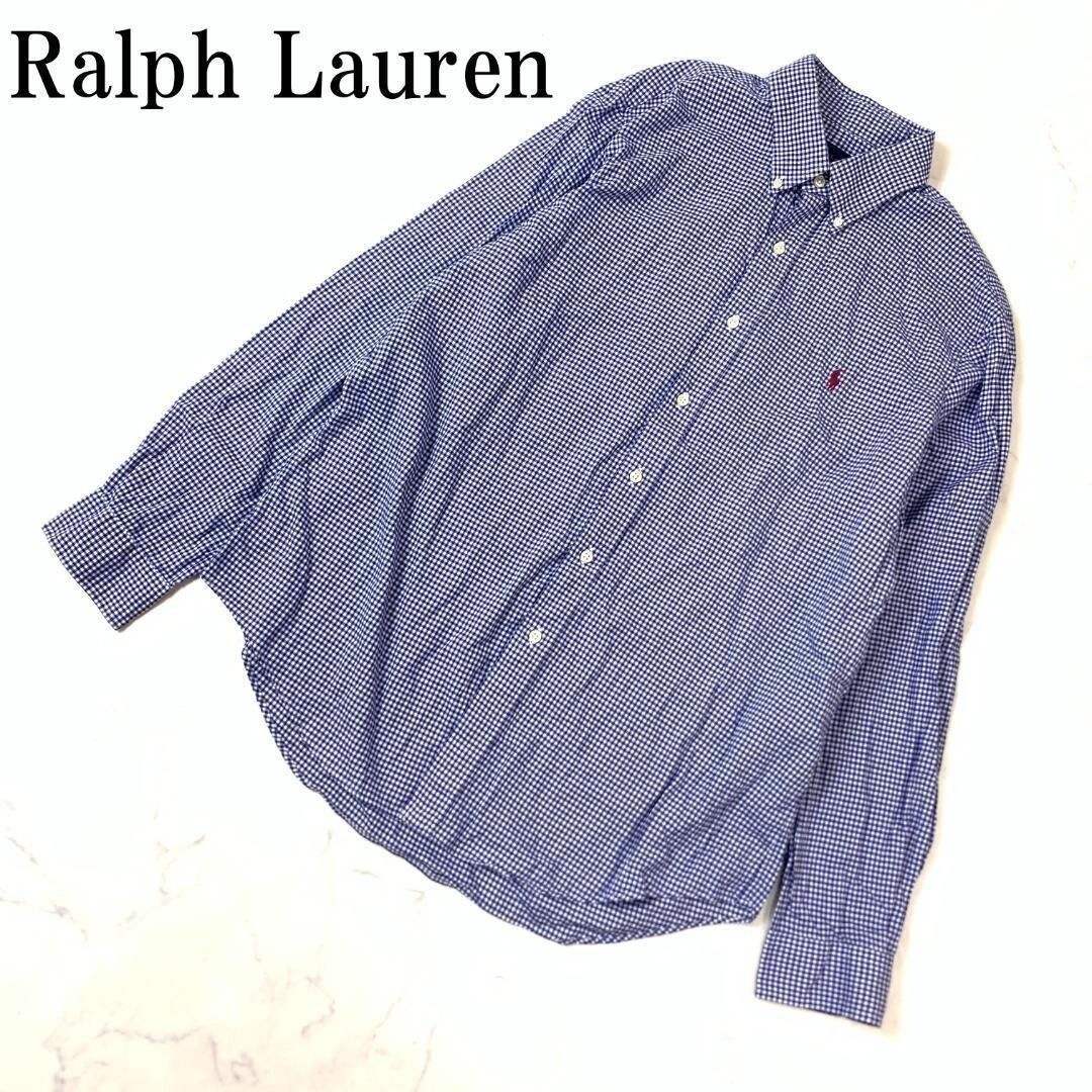 - LA7831 ラルフローレン Ralph Lauren 180/100A ブロックチェック カジュアル 長袖 ボタンダウンシャツ ブルー コットン L