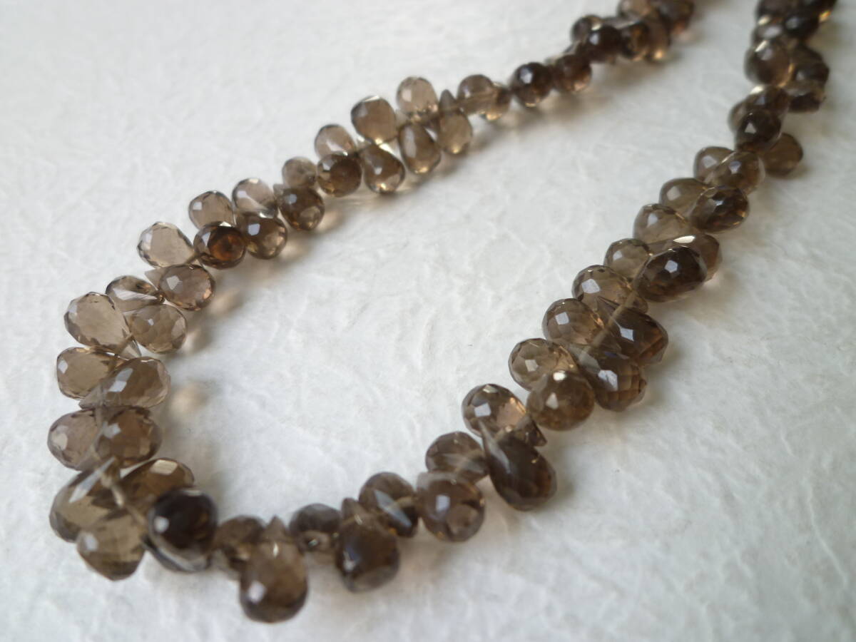 - 95粒1連 スモーキークォーツ ドロップカット 3×6~4×8mm前後 横穴 茶水晶【匿名配送 送料込】