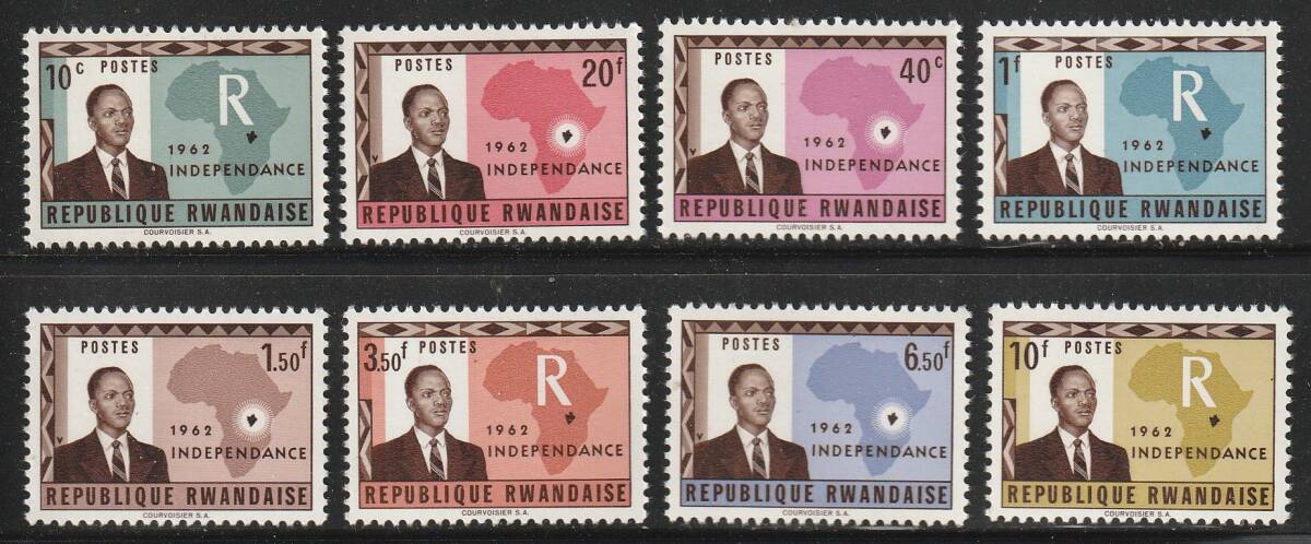 - (ルワンダ)1962年独立記念8種完、スコット評価2.85ドル(海外より発送、説明欄参照)
