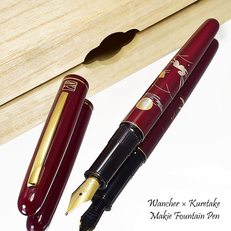 - ■●【WANCHER×KURETAKE】呉竹近代蒔絵万年筆「うさぎ」日本伝統工芸 アルミ素材 両用式 WANCHERニブ F 細字 赤軸 新品 1円~/WKR181515F
